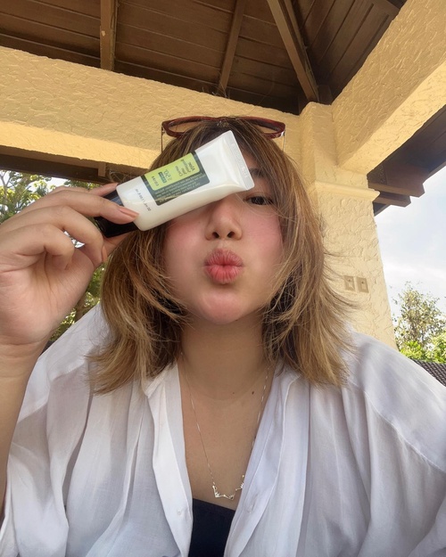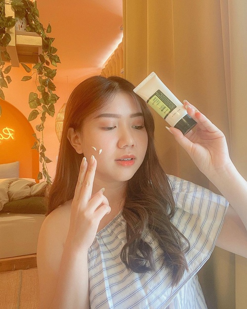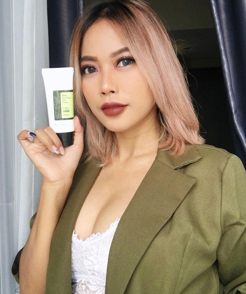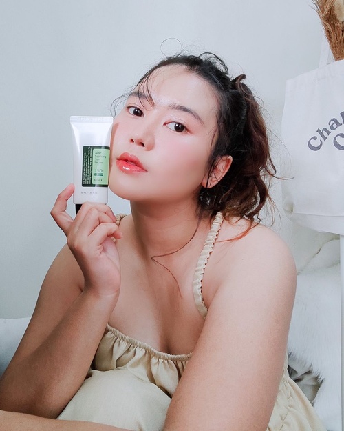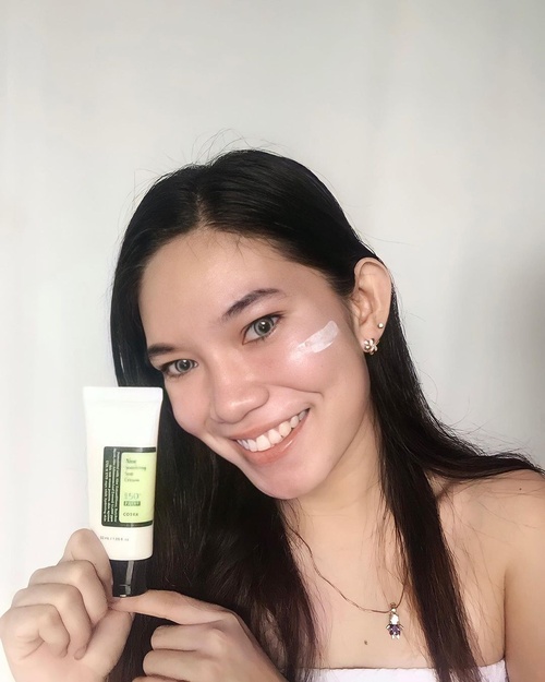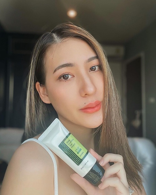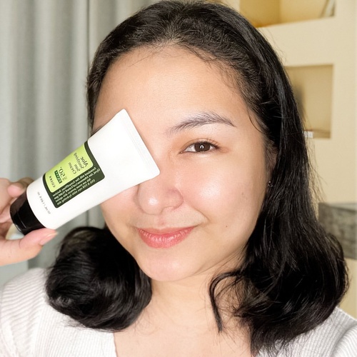 🌿Absolutely love this sunscreen! non-greasy, no white cast, and reduce redness, this sunscreen sits nicely under makeup and indoor at the same time. It gives a natural moisture, and a bit dewy. What I like about this sunscreen is that it has aloe vera that gives a strong anti-aging and deep soothing effect. It helps block UVA and UVB rays while hydrating the skin. I recommend this sunscreen for people who have; sensitive skin, normal, dry, and combination also, for oily skin like me, it works for me.