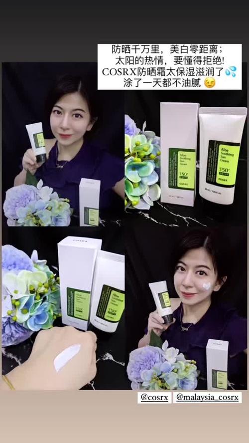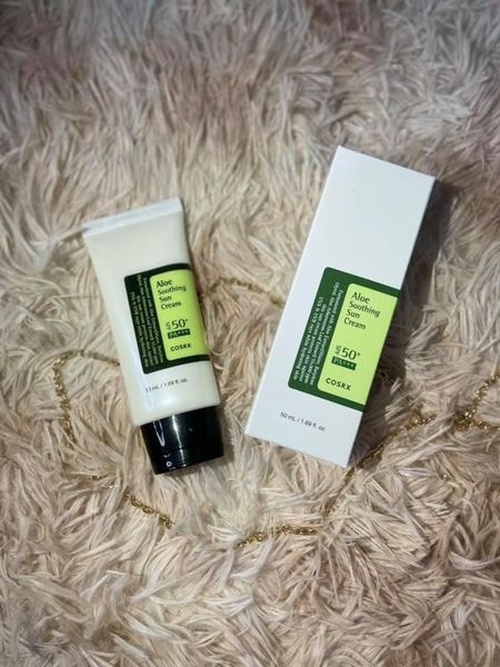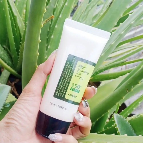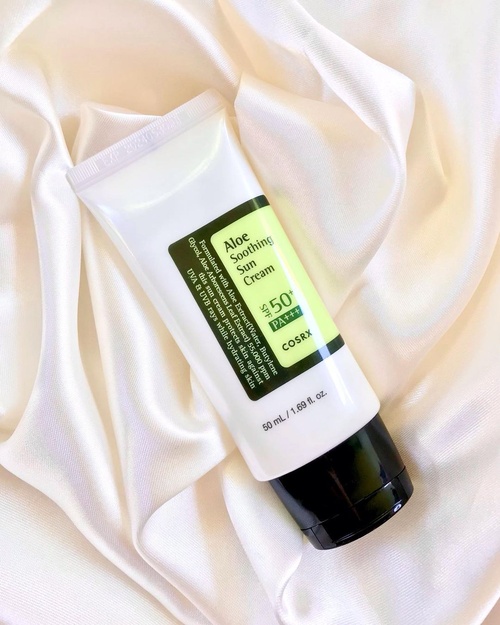 🌿COSRX Aloe Soothing Sun Cream is enriched with a cocktail of natural ingredients to provide sustained protection from both UV rays and everyday environmental stress. Powered by 5,500 ppm of Aloe Vera Leaf Extract, it imparts much-needed moisture to prevent loss of firmness and make skin smoother and brighter.